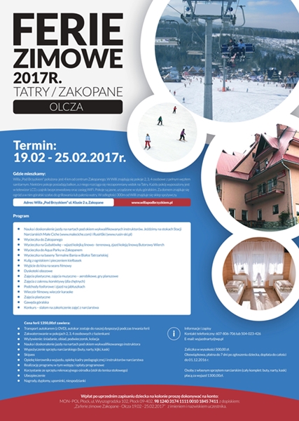 Ruszyliśmy z organizacją obozu narciarskiego w drugim tygodniu ferii 2017 (województwa mazowieckiego). Już wiemy, że rok temu wyszło nam to super, bo na liście uczestników mamy dzieciaki, które chcą być z nami ponownie. Ale nie martwcie się, mamy jeszcze kilka miejsc, zatem wciąż czekamy na zainteresowanych!